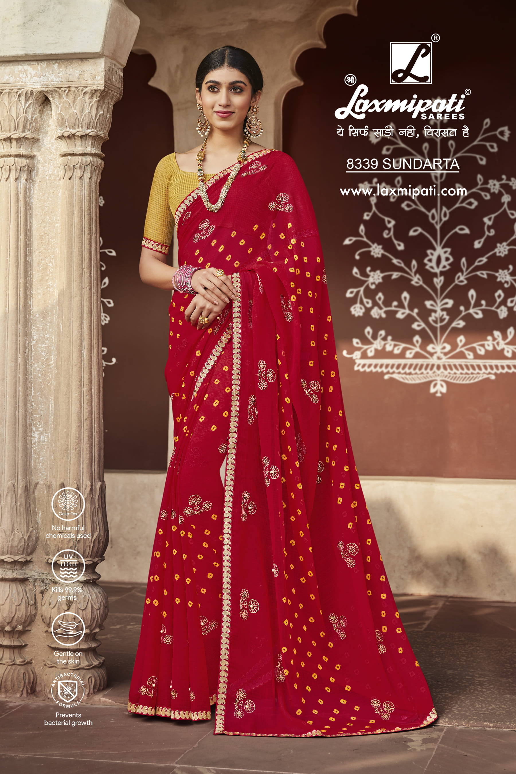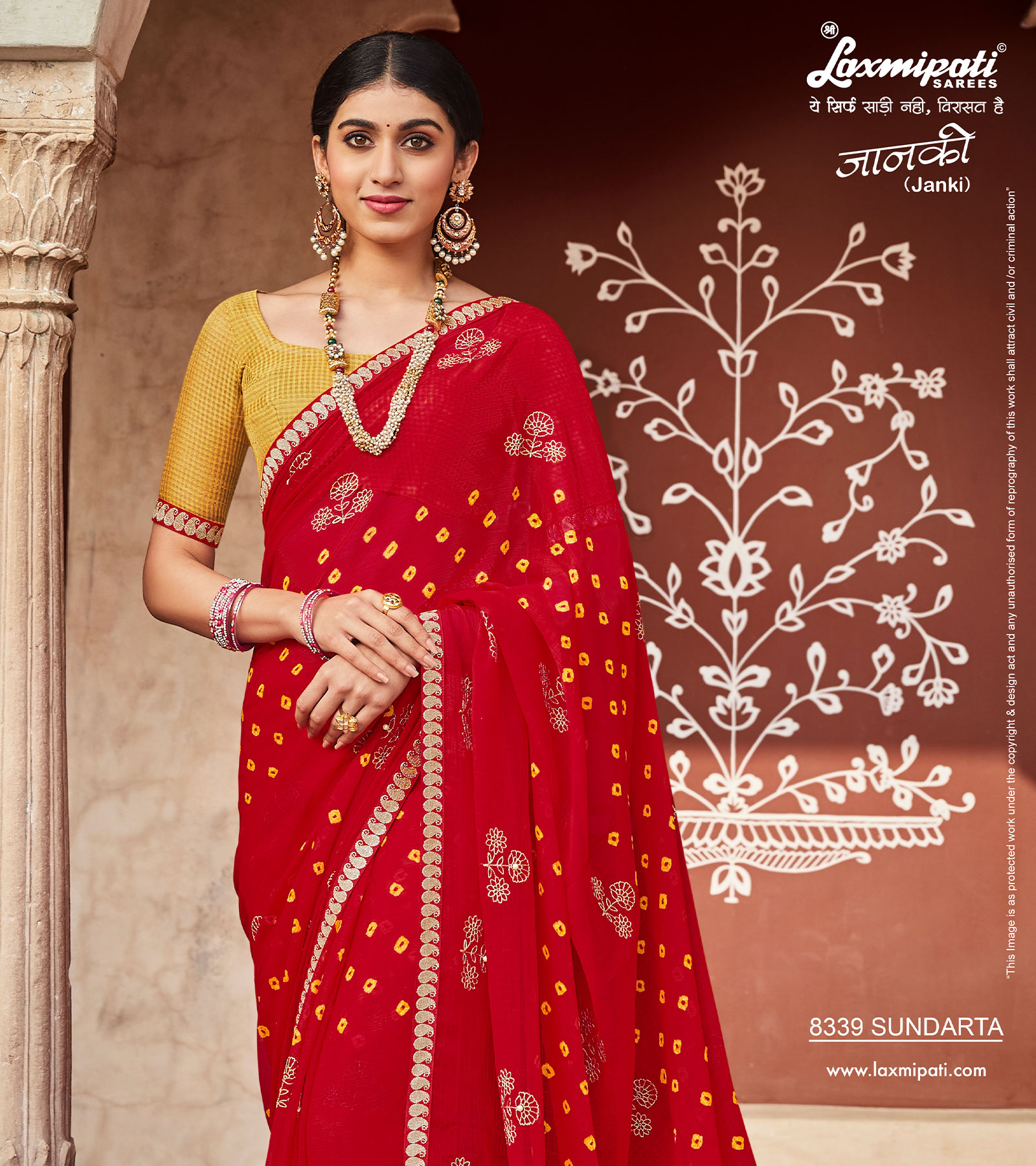 8339 Laxmipati Janki 8339 Chiffon Red Saree