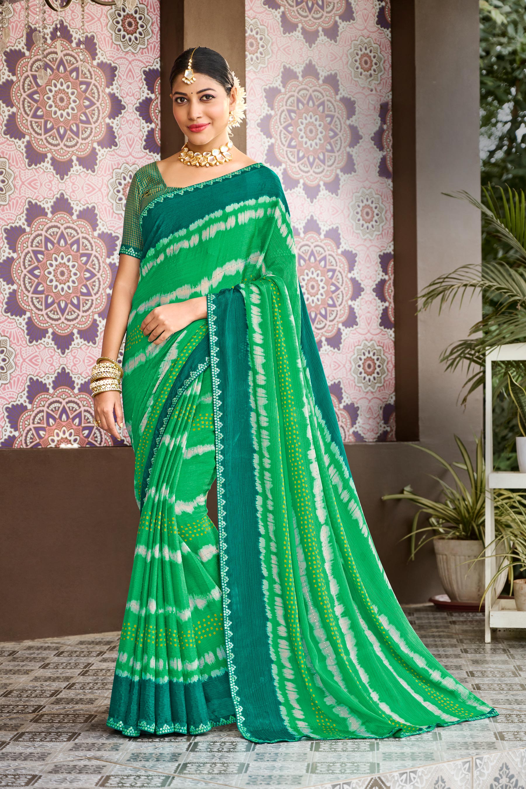 Laxmipati Multicolor Color Chiffon Party Wear,Office wear Saree for Women With Blouse Piece and Fancy Lace Border